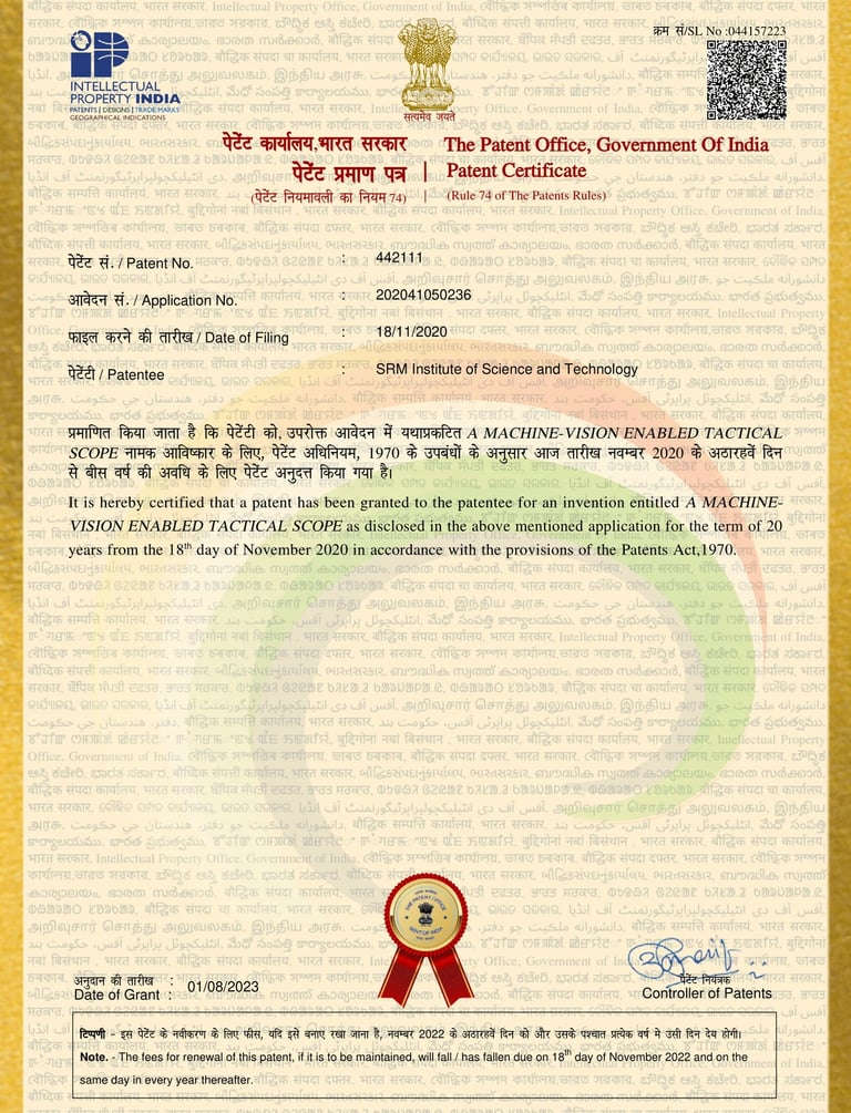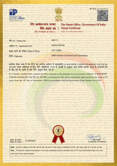 Received Seed Funding of 2.5 Lakhs INR for Prototype development of A Machine - Vision Enabled Tactical Scope