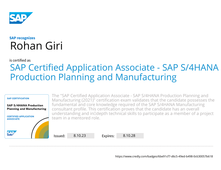 SAP S/4HANA Production Planning and Manufacturing (C_TS422_2021)